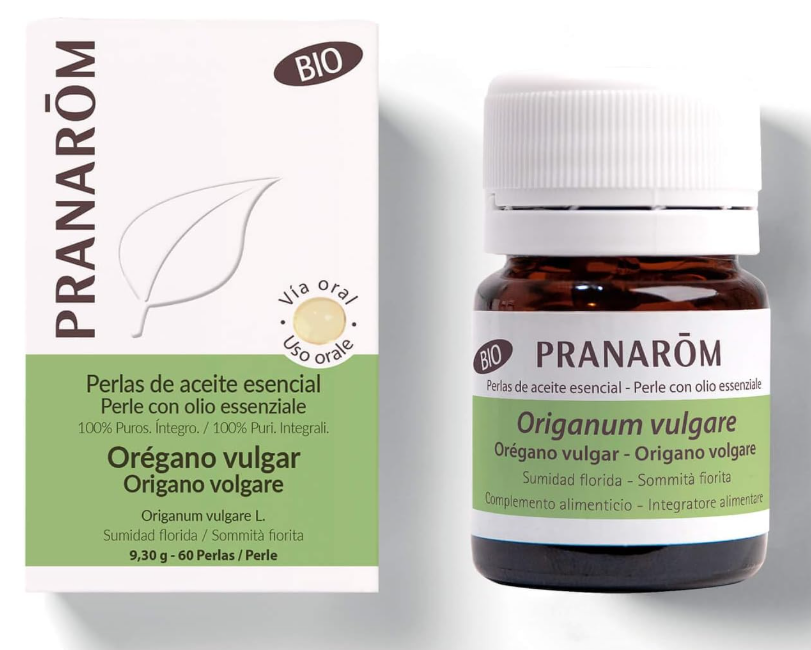 PRANAROM – Perlas Orégano – Aceite Esencial 100% Natural y Bio – Minicápsulas Faciles de Tragar – Apoyo a la Digestión – Formato Práctico – Sabor neutro – AEQT – 60 minicápsulas