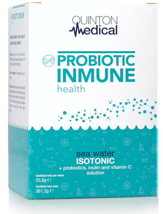 Quinton Medical – Probiotic Inmune Health, Probióticos con Agua de Mar Isotónica y Vitamina C, Refuerza el Sistema Inmunitario y Digestivo, 14 Sobres