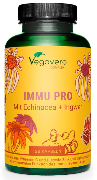 Complejo Defensas Inmunitarias | 100% NATURAL | 120 Cápsulas | Vitamina C, D3 + Equinácea + Zinc + Selenio + Jengibre | Immu Pro Complex | Sin Additivos y Vegano | Vegavero