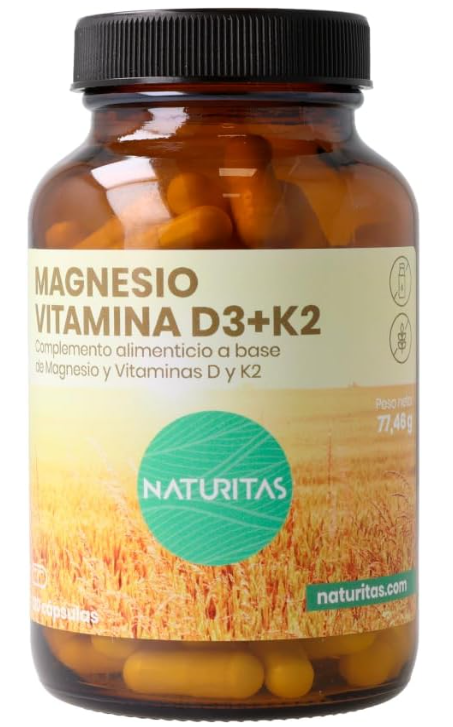 Magnesio Vitamina D3+K2 120 Cápsulas Naturitas Essentials | Ayuda a disminuir el cansancio y la fatiga | Contiene Vitamina D y K | Fortalece el sistema inmunitario
