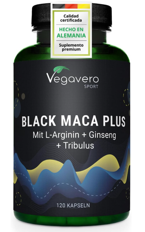 Vegavero MACA NEGRA + L-Arginina + Ginseng + Tribulus + Zinc | 8500 mg | ALTA CONCENTRACIÓN 10:1 | 2.100 mg de Extracto Puro Estandarizado | para Hombre y Mujer | Vegano & Sin Aditivos