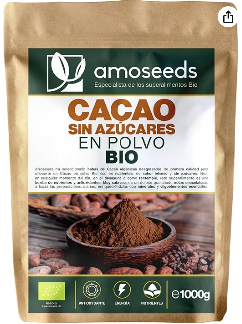 Cacao sin Azúcares en polvo BIO | 100% Puro y Natural | Habas de Cacao desgrasadas Orgánicas | Intenso sabor a chocolate | Primera Calidad